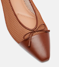 An Aquazzura shoe is a labor of love: a single pair can include over 30 components, each of which is hand-assembled by skilled artisans. The Gioia ballet flats are Italian-crafted from mesh and supple nappa leather. Product Details - Upper: fabric, leather (nappa) - Lining: fabric, leather - Sole: leather insole, leather and rubber sole - Toe shape: pointed toe - Made in Italy - Includes: dust bag, shoe box - Designer color name: Tobacco/Rich Cognac - Item color: brown - Item number: P01077791 Size & Fit - True to size - Slightly narrow at the toe - Best fit for narrow feet - European sizes - 1,5cm-0.5" heel (size EU 38)