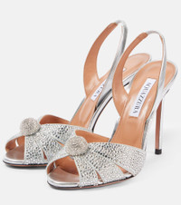 Product Details - Upper: leather - Lining: leather - Sole: leather insole and sole - Toe shape: round open toe - Made in Italy - Includes: shoe box, dust bag - Designer color name: Silver - Closure: elasticated strap - Item number: P00997587 Size & Fit - Fits slightly large to size - we recommend trying a half size smaller - European sizes - 10,5cm-4" heel (size EU 38)