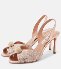 Italian Flirt 75 crystal-embellished metallic leather slingback sandals Antique rose