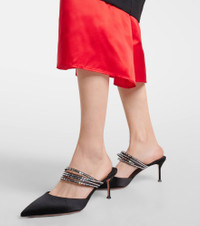 Unforgettable events call for glamorous footwear, like the Luce mules from Aquazzura. The pair is made in Italy from satin and features 65mm heels and crystal-embellished straps. Product Details - Upper: fabric - Lining: leather - Sole: leather insole and sole - Color: black - Toe shape: pointed toe - Made in Italy - Includes: dust bag, shoe box - Designer color name: Black - Details: crystals - Item number: P01138003 Size & Fit - True to size - European sizes - 6,5cm-2.5" heel