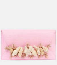 Aquazzura’s Small Marea clutch is detailed with raffia-trimmed, sea-inspired embellishments. It has a foldover top to reveal the label’s signature aquamarine interior, spacious enough for everyday essentials. Product Details - Material: fabric - Lining: fabric - Made in Italy - Designer color name: Petal Rose/Light Gold - Item color: pink - Internal details: single compartment - Item number: P01025770