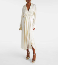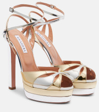 Already a favorite among the fashion set, Aquazzura is your go-to label for glamorous footwear. Crafted from metallic leather, the Moves sandals are set on 130mm block heels, featuring an almond toe and a buckle fastening. Product Details - Upper: leather - Lining: rubber - Sole: leather insole and sole - Toe shape: almond open toe - Made in Italy - Includes: shoe box - Designer color name: Silver/Soft Gold - Item color: silver, gold - Closure: buckle-fastening ankle strap - Item number: P01077852 Size & Fit - True to size - Best fit for narrow feet - European sizes - 13cm-5" heel (size EU 38) - 3,5cm-1.5" platform (size EU 38)