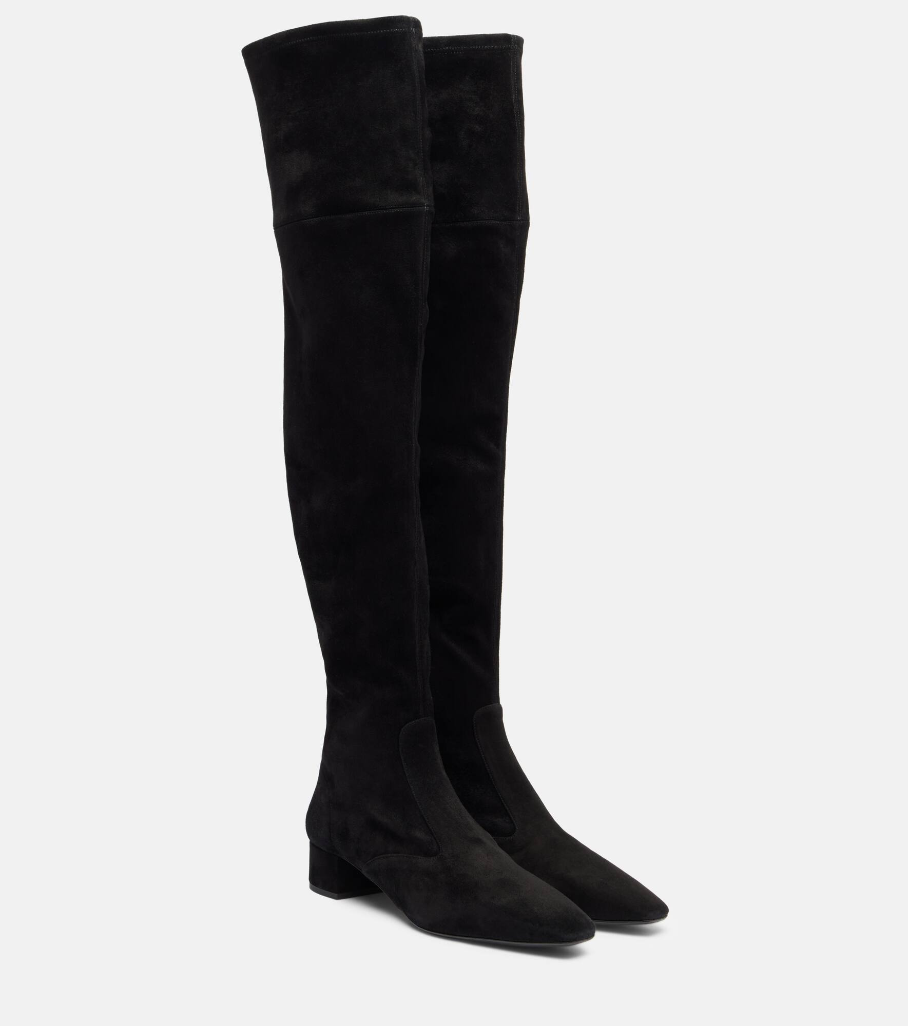 Elevate any look with the Remi over-the-knee boots from Aquazzura. Crafted in Italy from suede, the pair is designed with 35mm block heels and square toes. Product Details - Upper: leather (suede) - Lining: leather - Sole: leather insole, leather and rubber sole - Toe shape: square toe - Made in Italy - Includes: shoe box - Designer color name: Black - Item color: black - Closure: zipped fastening - Item number: P01122032 Size & Fit - True to size - For narrow feet, we recommend trying a half size smaller - European sizes - 3,5cm-1.5" heel (size EU 38) - 63cm-25" shaft height (size EU 38) - 35cm-14" shaft width (size EU 38) - shaft width measured on largest part of boot