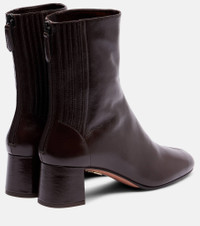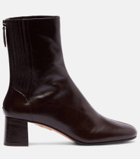 The Saint Honore boots from Aquazzura are an essential for every well-curated wardrobe. Crafted from shiny nappa leather, the design comes with 35mm block heels and zips in the back. Product Details - Upper: leather (nappa) - Lining: leather - Sole: leather insole, leather and rubber sole - Toe shape: round toe - Made in Italy - Includes: shoe box, dust bag - Designer color name: Espresso - Item color: brown - Closure: zipped back - Item number: P01097527 Size & Fit - True to size - European sizes - 5,0cm-2" heel (size EU 38)