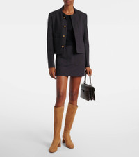 The Saint Honore boots from Aquazzura are an essential for every well-curated wardrobe. Crafted from supple suede, this style boasts rounded toes, 50mm block heels, concealed elastic sides, and a back zip closure. Product Details - Upper: leather (suede) - Lining: leather - Sole: leather insole and sole - Toe shape: round toe - Made in Italy - Includes: dust bag, shoe box - Designer color name: Camel - Item color: brown - Item number: P01077866 Size & Fit - True to size - European sizes - 5cm-2" heel (size EU 38) - 33cm-13" shaft width (size EU 38) - shaft width measured on largest part of boot