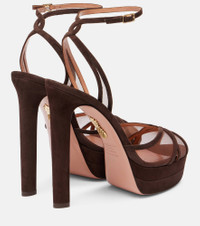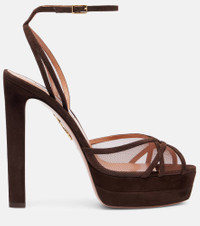 An Aquazzura shoe is a labor of love: a single pair can include over 30 components, each of which is hand-assembled by skilled artisans. Made from soft suede, the Shear Plateau platform pumps are complete with mesh inserts on the uppers and 130mm stiletto heels. Product Details - Upper: leather (suede) - Lining: leather - Sole: leather insole and sole - Toe shape: round open toe - Made in Italy - Includes: shoe box, dust bags - Designer color name: Espresso - Item color: brown - Contains non-textile parts of animal origin - Item number: P01077853 Size & Fit - Fits slightly large to size - we recommend trying a half size smaller - European sizes - 13cm-5" heel (size EU 38) - 4cm-1.5" platform (size EU 38)
