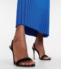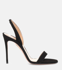 The So Nude sandals from Aquazzura get their name from their barely-there straps and are sure to make an alluring addition to your after dark edit. Crafted in Italy from black suede, the simple yet elegant design stands tall on leg-lengthening 105mm stiletto heel. Take yours for a night on the town under an flirty dresses and pant suits alike. Product Details - Toe shape: round open toe - Lining: leather - Sole: leather insole and sole - Closure: elasticated strap - Upper: leather - Designer color name: Black - Made in Italy - Item number: P00387763 Size & Fit - Fits slightly large to size - we recommend trying a half size smaller - European sizes - 10,5cm-4" heel (size EU 38)