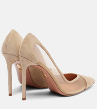 An Aquazzura shoe is a labor of love: a single pair can include over 30 components, each of which is hand-assembled by skilled artisans. The Studio pumps are crafted from supple suede and mesh and set on 105mm heels. Product Details - Upper: leather (suede), fabric - Lining: leather - Sole: leather insole and sole - Color: beige - Toe shape: pointed toe - Made in Italy - Includes: dust bag, shoe box - Designer color name: Light Taupe - Item color: beige - Item number: P01138000 Size & Fit - True to size - European sizes - 10,5cm-4" heel