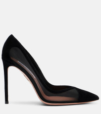 An Aquazzura shoe is a labor of love: a single pair can include over 30 components, each of which is assembled by skilled artisans. Made in Italy from black suede with mesh trims, the Studio pumps have pointed-toed silhouettes and 105mm stiletto heels. Product Details - Upper: lamb leather (suede), fabric - Lining: leather, fabric - Sole: leather insole and sole - Color: black - Toe shape: pointed toe - Made in Italy - Includes: shoe box, dust bag - Designer color name: Black - Item color: black - Item number: P01138001 Size & Fit - True to size - European sizes - 10,5cm-4" heel