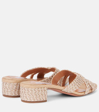 An Aquazzura shoe is a labor of love: a single pair can include over 30 components, each of which is hand-assembled by skilled artisans. The Sundance Beach mules are made in Italy from raffia and feature 35mm block heels. Product Details - Upper: fabric - Lining: leather - Sole: leather insole and sole - Toe shape: almond open toe - Made in Italy - Includes: shoe box, dust bag - Designer color name: Multi Natural - Item color: beige, gold, pink - Item number: P01014406 Size & Fit - True to size - European sizes - 3,5cm-1.5" heel (size EU 38)