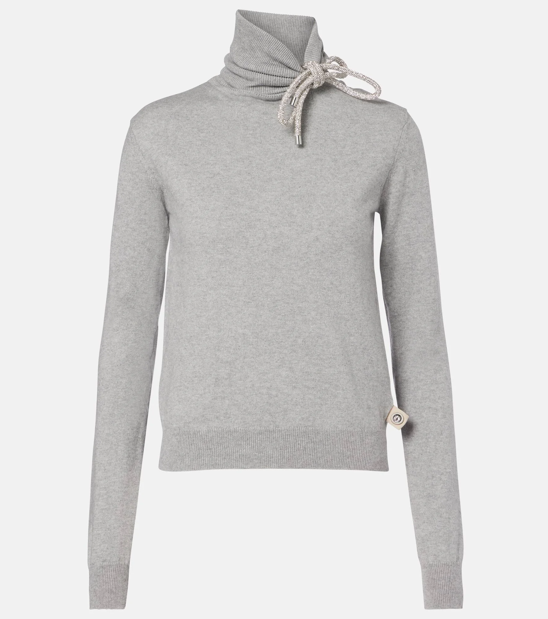 Named after the iconic New York nightclub, Area takes the glamour of party dressing in a fresh direction. This cotton and cashmere sweater features a ribbed turtleneck with a crystal-embellished knot detail. Product Details - Material: 95% cotton, 5% cashmere - Care instructions: dry clean - Made in China - Color: grey - Designer color name: Medium Grey - Collar: turtleneck - Cuff: ribbed - Hem: ribbed - Item number: P01136373 Size & Fit - True to size - Straight fit - Slightly stretchy fabric - Falls to the hip - The model seen in the picture is 178cm-5'10" and wearing a size XS