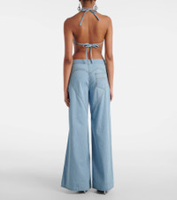 You will surely stand out from the crowd when wearing this dazzling top from Area. Crafted from cotton, this glamorous piece features sculptural rosette floral-applique and scintillating crystal embellishments. Self-ties at the neck and back complete the style with a touch of refined allure. Product Details - Material: 100% cotton - Care instructions: machine wash at 30 degrees - Made in Italy - Designer color name: Super Light Blue - Item color: blue - Closure: self-ties - Item number: P01045668 Size & Fit - True to size - Low back - Fitted - Non-stretchy fabric - The model seen in the picture is 178cm-5'10" and wearing a size XS