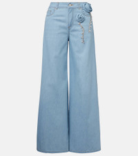Make a seamless transition from daytime ease to after-dark glamour in these jeans from Area. Their wide-leg silhouette is enhanced with rosette floral-appliques, dazzling crystal embellishments, and distinctive heart-shaped stitching at the back. Product Details - Material: 100% cotton - Care instructions: machine wash at 30 degrees - Made in Italy - Designer color name: Super Light Blue - Item color: blue - Closure: zipper fly, button fastening - Pockets: five pockets - Item number: P01045670 Size & Fit - Non-stretchy fabric - Wide-leg - Mid-rise - The model seen in the picture is 178cm-5'10" and wearing a size 26