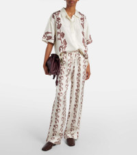 Product Details - Material: 100% silk - Care instructions: hand wash - Made in China - Designer color name: Brown Ecru Vine - Item color: ivory - Elasticated drawstring waist - Pockets: side slit pockets - Item number: P01041539 Size & Fit - True to size - Elasticated waist - Adjustable at the waist - Non-stretchy fabric - Wide-leg - The model seen in the picture is 178cm-5'10" and wearing a size XS