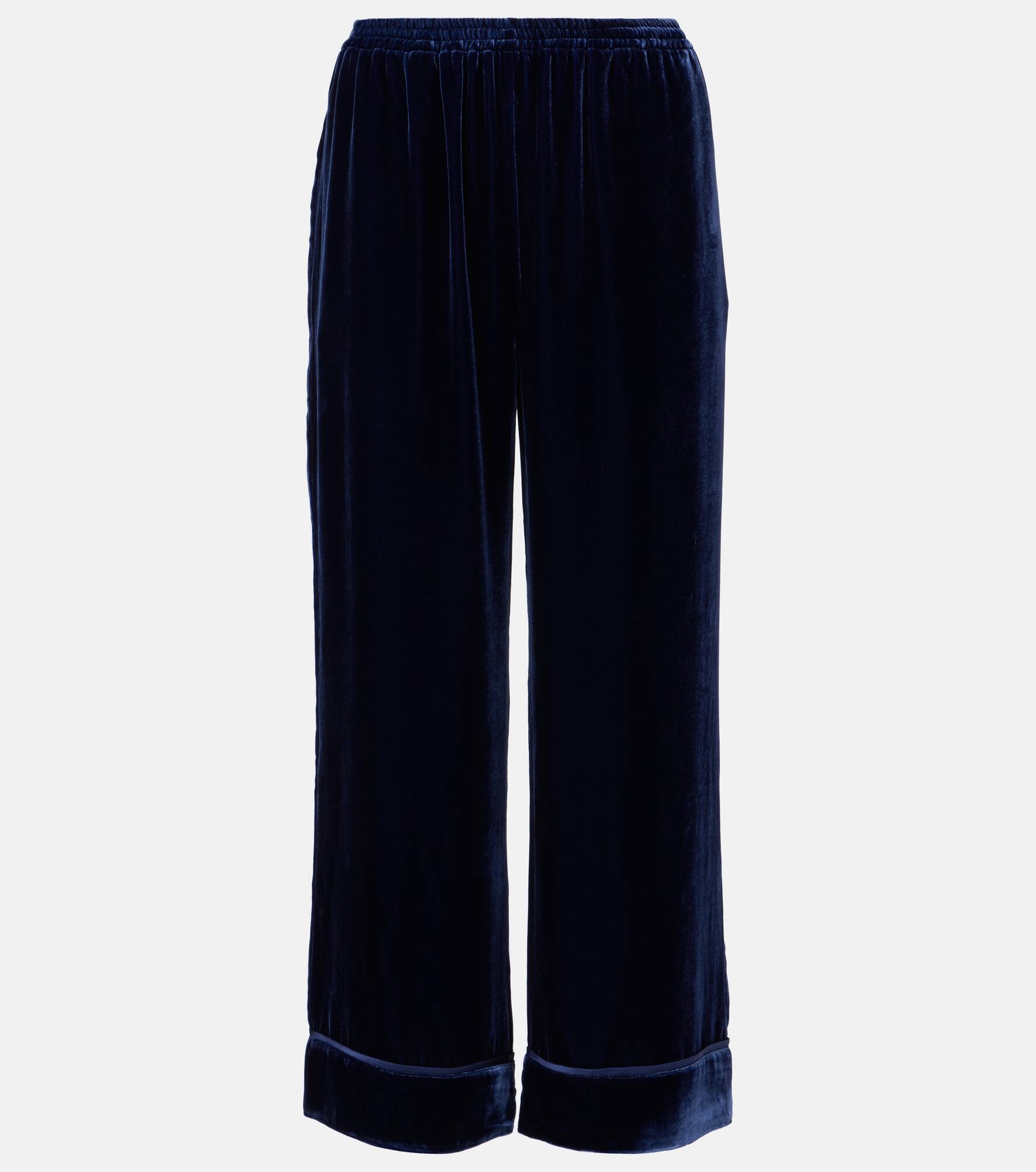 Defined by a relaxed, effortless energy, Asceno’s time-tested silhouettes are informed by the brand’s heritage in sleepwear. Case in point, the Brescia velvet pants are shaped with a mid-rise waist and relaxed wide legs – the perfect balance between loungewear and eveningwear. Product Details - Material: 82% viscose, 18% silk - Care instructions: dry clean - Made in China - Designer color name: Midnight - Elasticated waistband - Pockets: side slit pockets - Item number: P01000622 Size & Fit - True to size - Elasticated waist - Non-stretchy fabric - Wide-leg - The model seen in the picture is 178cm-5'10" and wearing a size XS