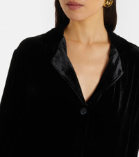 Defined by a relaxed, effortless energy, Asceno’s time-tested silhouettes are informed by the brand’s heritage in sleepwear. Crafted from velvet, the Calabasas shirt features a buttoned front with a classic collar. Product Details - Material: 82% viscose, 18% silk - Care instructions: dry clean - Made in China - Designer color name: Black - Item color: black - Notched lapel - Closure: single-breasted (three buttons) - Item number: P01130033 Size & Fit - True to size - Designed for a loose fit - Non-stretchy fabric - Falls below the hip - The model seen in the picture is 178cm-5'10" and wearing a size XS