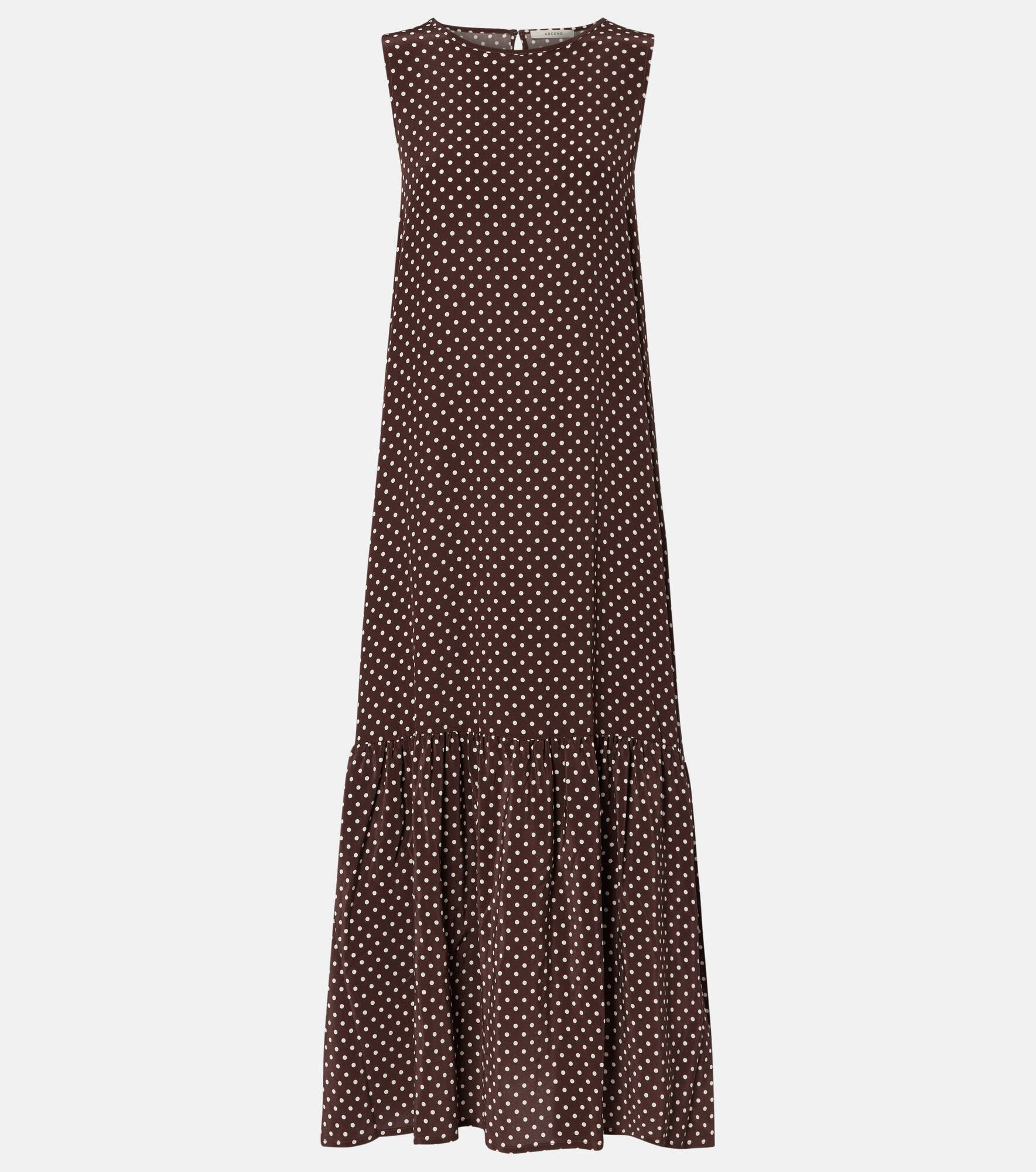 Defined by a relaxed, effortless energy, Asceno’s time-tested silhouettes are informed by the brand’s heritage in sleepwear. This midi dress is cut from pure silk into loose and flowy tiers, and decorated with all-over polka dots. Product Details - Material: 100% silk - Care instructions: hand wash - Made in China - Designer color name: Umber Brown Dot - Item color: brown, white - Closure: hook-fastening back - Item number: P01093380 Size & Fit - True to size - Designed for a loose fit - Non-stretchy fabric - The model seen in the picture is 178cm-5'10" and wearing a size XS