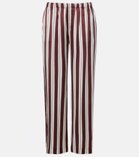 Defined by a relaxed, effortless energy, Asceno’s time-tested silhouettes are informed by the brand’s heritage in sleepwear. Made from silk satin, the Rosa pajama pants are characterized by their all-over striped print. Product Details - Material: 100% silk - Care instructions: hand wash - Made in China - Designer color name: Maroon Fine Stripe - Item color: multicolor - Elasticated waistband - Pockets: side slit pockets - Item number: P01093375 Size & Fit - True to size - Elasticated waist - Non-stretchy fabric - Straight leg - The model seen in the picture is 178cm-5'10" and wearing a size XS