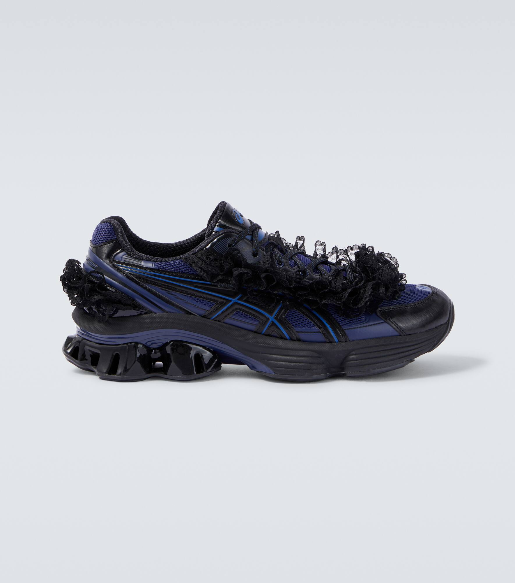 Part of a collaboration between Shushu/Tong and Asics, the Gel-Kinetic Fluent sneakers fuse archival codes with delicate aesthetics. These shoes feature sporty uppers with tactile lace trims, FF Blast Plus cushioning, and GEL technology for enhanced comfort. Product Details - Upper: fabric, rubber - Lining: fabric - Sole: fabric insole, rubber sole - Toe shape: round toe - Made in Vietnam - Includes: shoe box - Designer color name: Blue Expanse/Monaco Blue - Item color: blue, black - Item number: P01061539 Size & Fit - Fits small to size - we recommend trying 1.5 sizes larger - US sizes