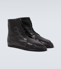 Auralee crafts luxurious pieces made entirely of premium materials from around the world. Crafted using artisanal Japanese shoe-making techniques, these Derby boots are crafted from meticulously tanned leather. Product Details - Upper: calf leather - Lining: leather - Sole: leather insole, rubber sole - Toe shape: round toe - Made in Japan - Includes: shoe box, dust bag - Designer color name: Black - Item color: black - Closure: lace-up - Item number: P01068800 Size & Fit - True to size - Half sizes please take the next size down - Japanese sizes