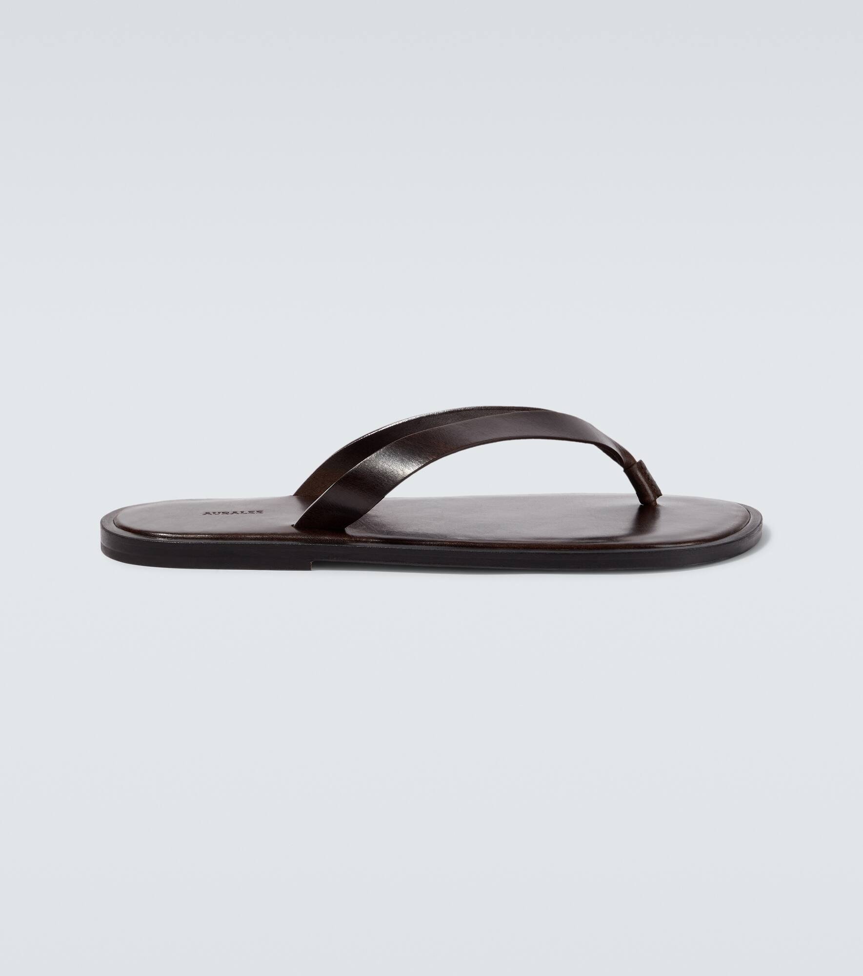 Auralee puts care and craftsmanship at the forefront of each piece's design process. Spot how even these minimalist leather thong sandals are crafted from leather by Japanese shoemakers for an exceptionally comfortable fit. Product Details - Upper: leather - Lining: leather - Sole: leather insole and sole - Toe shape: almond open toe - Made in Japan - Includes: shoe box, dust bag - Designer color name: Brown - Item color: brown - Item number: P00983861 Size & Fit - Fits slightly large to size - we recommend trying a half size smaller - Japanese sizes