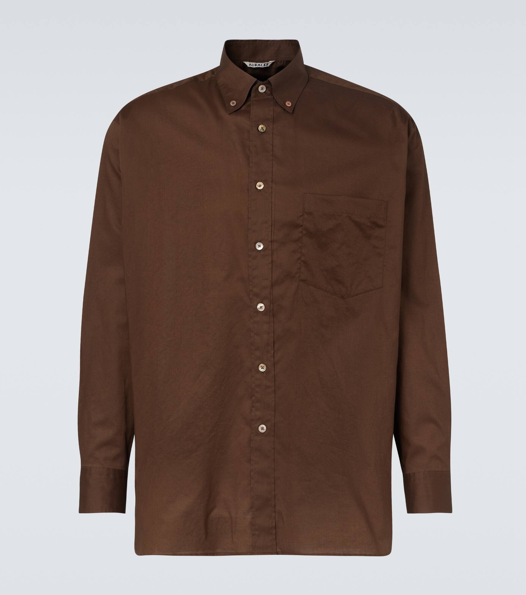 Look to Auralee for simple, sophisticated designs like this shirt. It's thoughtfully crafted into an oversized silhouette from pure cotton that undergoes repeated washing and kneading to reduce stiffness. Product Details - Material: 100% cotton - Care instructions: machine wash cold - Made in Japan - Designer color name: Dark Brown - Item color: brown - Office shirt - Collar: button-down - Pockets: angled chest pocket - Cuff: one button - Item number: P01029200 Size & Fit - True to size - Dropped shoulders - With pleats in the back - Designed for a loose fit - Non-stretchy fabric - Falls below the hip - Height of model is 189cm-74.5" and wears a size 5
