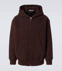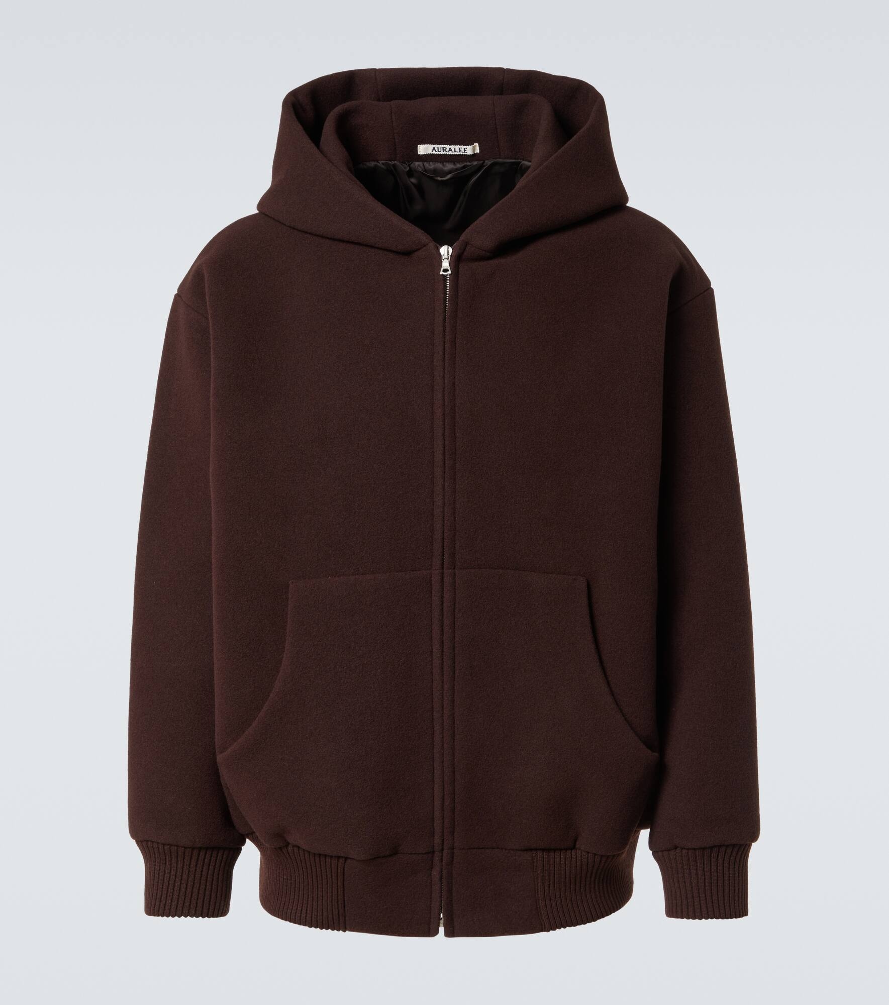 Double Cloth Heavy Wool Pile Zip Hoodie - Dark Brown
