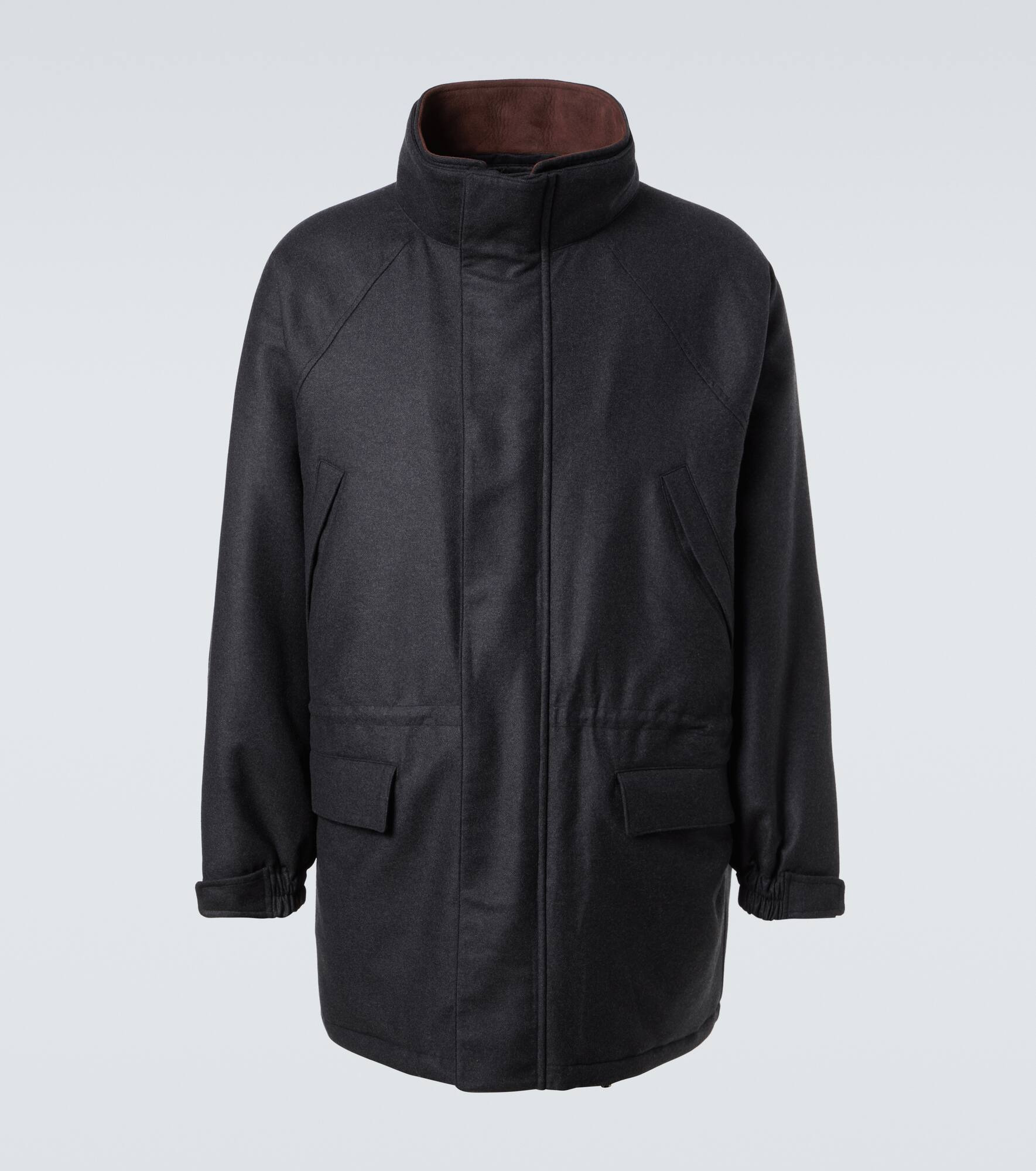 Auralee crafts luxurious pieces made entirely of premium materials from around the world. This coat is crafted from wool flannel, filled with warm padding, and features a detachable leather collar. Product Details - Material: 100% wool - Care instructions: dry clean - Made in Japan - Designer color name: Charcoal - Item color: gray - Filling: 100% polyester - Lining: 100% cupro - Trim: 100% leather (suede) - Closure: zipper, snap-button fastenings - Pockets: snap-buttoned pockets, internal pockets - Drawstring waist - Cuff: buttoned, elasticated - Item number: P01068817 Size & Fit - True to size - Loose fit, drawstring waist - Adjustable hem - Non-stretchy fabric - Falls below the hip - Height of model is 192cm-75.5" and wears a size 5