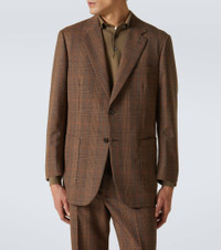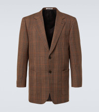 Brown Bluefaced Wool Check Double-Breasted Blazer