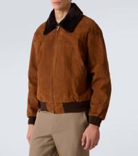 This aviator jacket from Auralee is crafted from soft suede and features a contrasting shearling collar. The piece is complete with zipped front closure, a ribbed hem, and welt pockets. Product Details - Material: 100% goat leather (suede) - Care instructions: specialist clean - Made in China - Designer color name: Camel Brown - Item color: brown - Lining: 100% cupro - Material II: 60% acrylic, 40% wool - Trim: 100% shearling - Hardware color: silver - Detachable trim - Cuff: ribbed - Pockets: welt pockets - Closure: zipped front - Hem: ribbed - Item number: P01069142 Size & Fit - True to size - Dropped shoulders - Straight fit - Elasticated hem - Non-stretchy fabric - Falls to the hip - Height of model is %cm%cm-%inch%" and wears a size 5