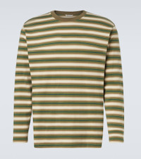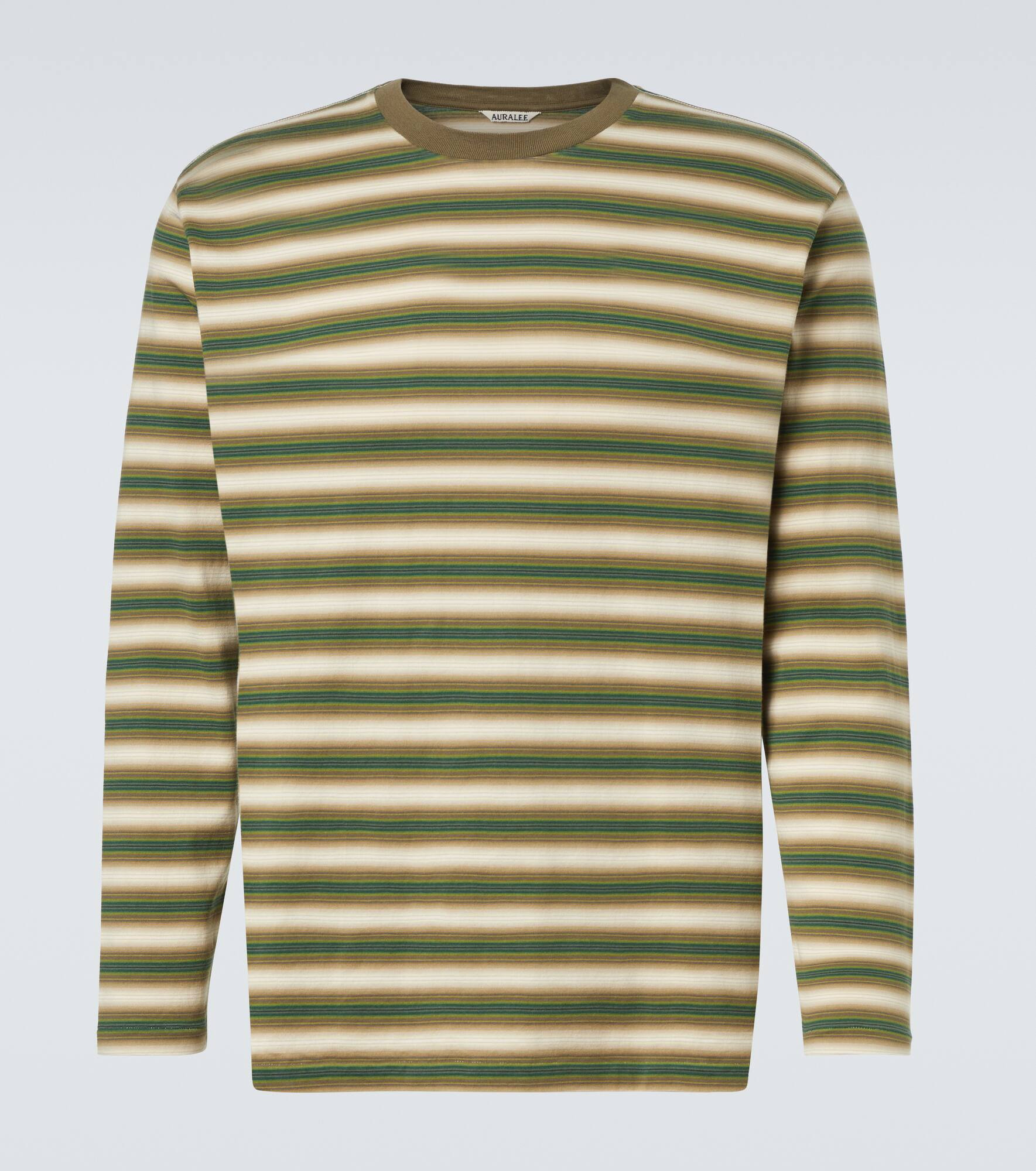 An everyday staple, this Auralee long-sleeved T-shirt is cut from soft cotton jersey. Finished with a classic crewneck, this striped design reflects the brand’s signature minimalist and refined aesthetic. Product Details - Material: 100% cotton - Care instructions: machine wash at 30 degrees - Made in Japan - Designer color name: Fade Brown Stripe - Item color: green, beige - Collar: crewneck - Item number: P01068791 Size & Fit - True to size - Dropped shoulders - Designed for a loose fit - Slightly stretchy fabric - Falls below the hip - The model in the picture is 185cm-6'1" and wearing a size 4