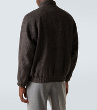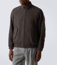 Wool Silk Tweed Zip Blouson Gray Brown Hairline