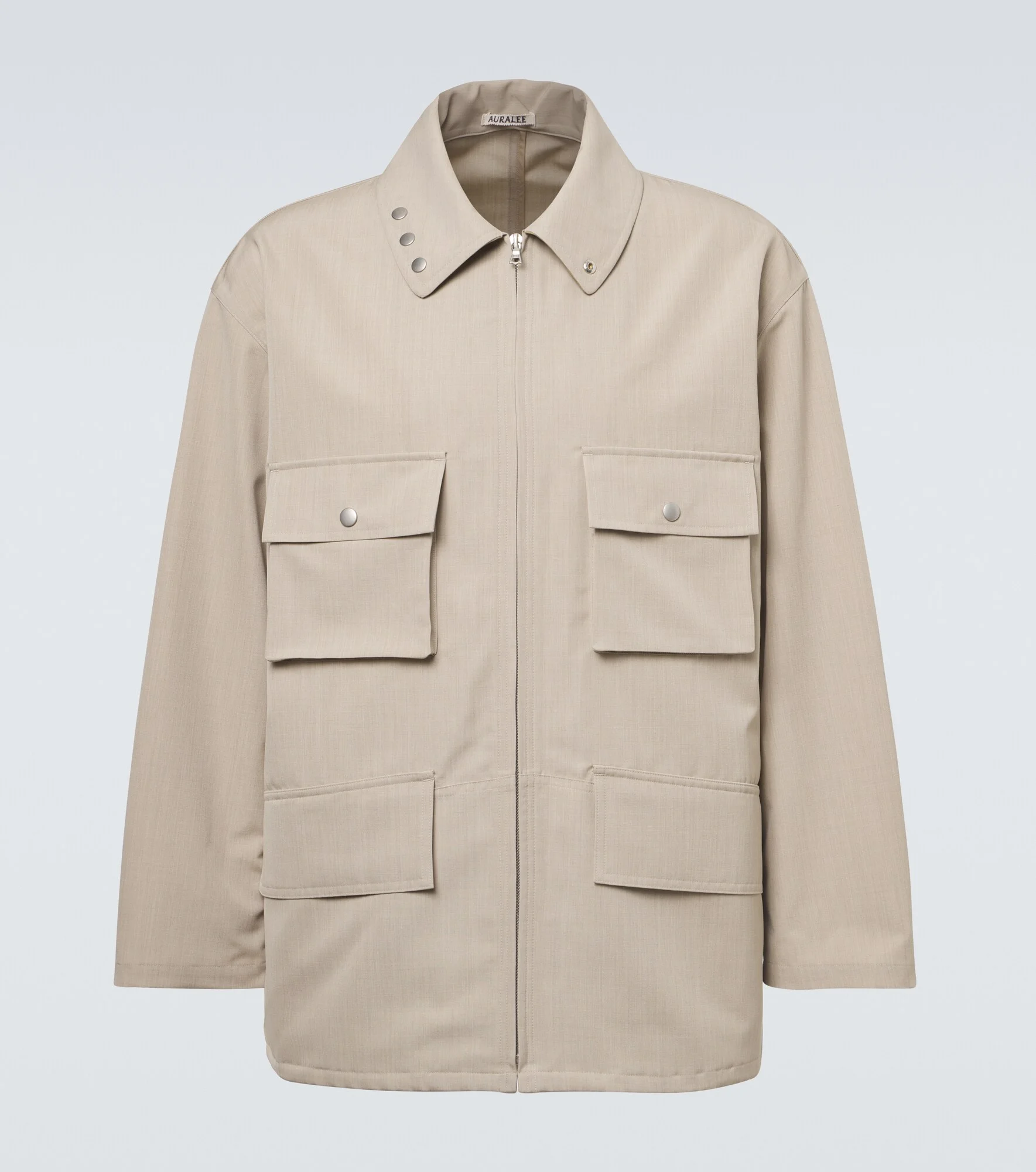 This blouson jacket from Auralee is crafted from refined, textured wool for a crisp hand-feel. The piece is complete with a concealed zip closure, a relaxed fit, and functional flap pockets. Product Details - Material: 100% wool - Care instructions: dry clean - Made in Japan - Color: beige - Designer color name: Top Gray Beige - Pockets: cargo pockets, flap pockets - Closure: concealed zipped front - Cuff: one button - Hem: drawstring at the hem for an adjustable fit - Item number: P01143741 Size & Fit - Fits large to size - we recommend trying one size smaller - Designed for a loose fit - Adjustable hem - Non-stretchy fabric - Falls below the hip - Height of model is 192cm-75.5" and wears a size 4