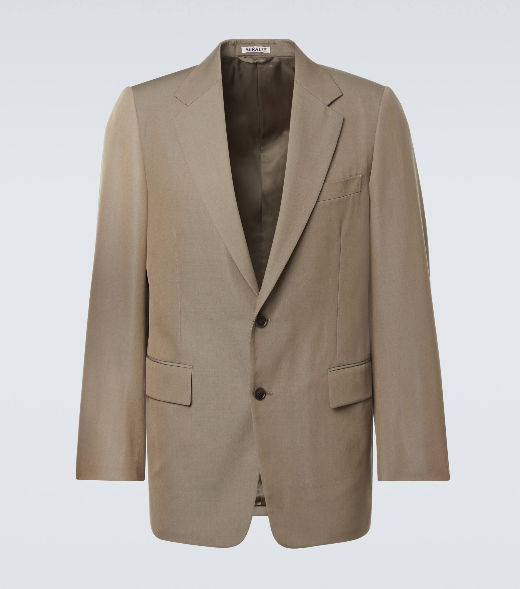 This blazer is cut from Auralee’s signature light wool gabardine, woven from fine yarns for a smooth, elegant finish. Treated for water repellence, the single-breasted design features flap pockets, notched lapels, and buttoned cuffs. Product Details - Material: 100% wool - Care instructions: dry clean - Made in Japan - Designer color name: Khaki Chambray - Item color: green - Lining: 100% cupro - Notched lapel - Pockets: flap pockets, internal pocket - Cuff: buttoned - Closure: single-breasted (two buttons) - Item number: P01068803 Size & Fit - True to size - Shoulder pad inserts - Designed for a loose fit - Non-stretchy fabric - Falls below the hip - The model in the picture is 185cm-6'1" and wearing a size 4