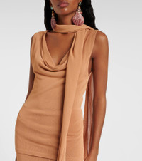 Designed in Los Angeles, Aya Muse has established itself as a go-to destination for standout essentials and empowering eveningwear. This draped top features a flattering cowl neckline, fitted silhouette, and elegant scarf-detail that cascades down the body. Product Details - Material: 100% viscose - Care instructions: dry clean - Made in China - Designer color name: Tan - Item color: beige - Self-tie collar - Item number: P01041678 Size & Fit - True to size - Fitted - Stretchy fabric - Falls to the hip - The model seen in the picture is 178cm-5'10" and wearing a size XS