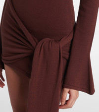 Designed in Los Angeles, Aya Muse has established itself as a go-to destination for standout essentials and empowering eveningwear. Knitted from an ultra-soft blend of silk and cotton, this draped minidress features bell sleeves and scarf-inspired detailing for added allure. Product Details - Material: 55% silk, 45% cotton - Care instructions: dry clean - Made in China - Designer color name: Dark Brown - Item color: brown - Detachable band - Item number: P01041681 Size & Fit - Fits small to size - we recommend trying one size larger - Fitted - Non-stretchy fabric - The model seen in the picture is 178cm-5'10" and wearing a size S