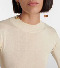 Product Details - Material: 55% silk, 45% viscose - Care instructions: hand wash - Made in China - Designer color name: Off White - Collar: mockneck - Item number: P00990367 Size & Fit - True to size - Fitted - Slightly stretchy fabric - The model seen in the picture is 178cm-5'10" and wearing a size XS