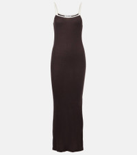 Designed in Los Angeles, Aya Muse has established itself as a go-to destination for standout essentials and empowering eveningwear. Made from stretchy jersey, this minimalist slip dress is finished with playful contrast trims. Product Details - Material: 60% viscose, 35% polyamide, 5% cashmere - Care instructions: hand wash - Made in Portugal - Designer color name: Brown Cream - Item color: brown - Item number: P01044789 Size & Fit - True to size - Stretchy fabric - The model seen in the picture is 178cm-5'10" and wearing a size XS
