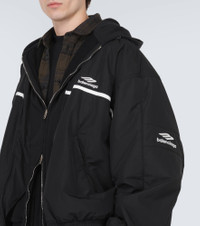 Product Details - Material: 52% cotton, 48% polyamide - Details: 100% cotton - Lining: 100% polyester - Filling: 60% silk, 40% polylactide - Embroidery: 100% polyester - Contains non-textile parts of animal origin - Closure: two-way zipped front, buttoned placket - Pockets: zipped pockets - Hem: elasticated, rounded - Cuff: elasticated - Hood - Collar: classic (Straight point) - Care instructions: dry clean - Made in Italy - Designer color name: Black - Material II: 100% cotton - Material III: 100% cotton - Material IV: 100% cotton - Trim: 97% cotton, 3% elastane - Item number: P00888844 Size & Fit - True to size - Designed for an extremely oversized fit - Dropped shoulders - Non-stretchy fabric - Falls below the hip - The model in the picture is 185cm-6'1" and wearing a size 3