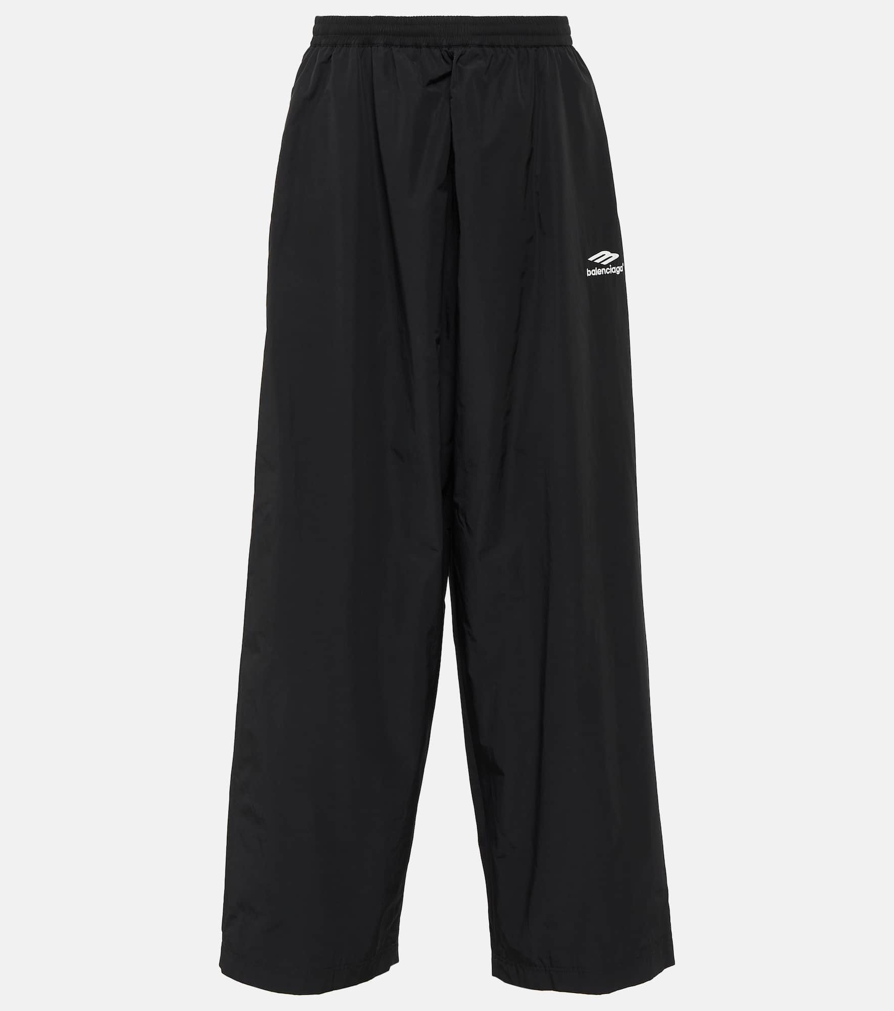 These black track pants from Balenciaga are made from technical cotton-blend poplin. The mid-rise design features the iconic 3B Sports Icon logo embroidery on the front. Product Details - Material: 52% cotton, 48% polyamide - Care instructions: dry clean - Made in Italy - Designer color name: Black - Lining: 100% polyester - Embroidery: 100% polyester - Pockets: zipped pockets - Item number: P00859018 Size & Fit - True to size - Elasticated waist - Adjustable at the waist - Mid-weight material - Wide-leg - The model seen in the picture is 178cm-5'10" and wearing a size XS