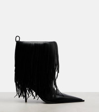 Innovation lies at the heart of Balenciaga, evident in every modern interpretation the house presents. The Avenue ankle boots are crafted from smooth leather and feature 90 mm stiletto heels adorned with signature fringes, merging bold design with refined elegance. Product Details - Upper: leather - Lining: leather - Sole: leather insole and sole - Color: black - Toe shape: pointed toe - Made in Italy - Includes: shoe box, dust bag - Designer color name: Black - Trim: leather - Item number: P01126050 Size & Fit - True to size - European sizes - 9cm-3.5" heel