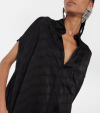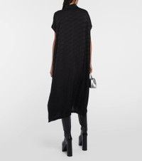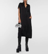 Exude effortless elegance in this midi dress from Balenciaga. Designed for a relaxed fit, the style features a shirt silhouette, raw-cut sleeves, and the brands iconic BB monogram jacquard-woven all over. Product Details - Made in Italy - Care instructions: dry clean - Material: 100% viscose - Designer color name: Black - Closure: buttoned front - Contains non-textile parts of animal origin - Details: 100% mother-of-pearl - Item number: P00833344 Size & Fit - Fits large to size - we recommend trying one size smaller - Designed for an extremely oversized fit - Mid-weight material - The model seen in the picture is 178cm-5'10" and wearing a size FR 34