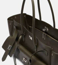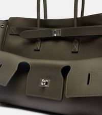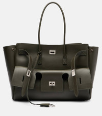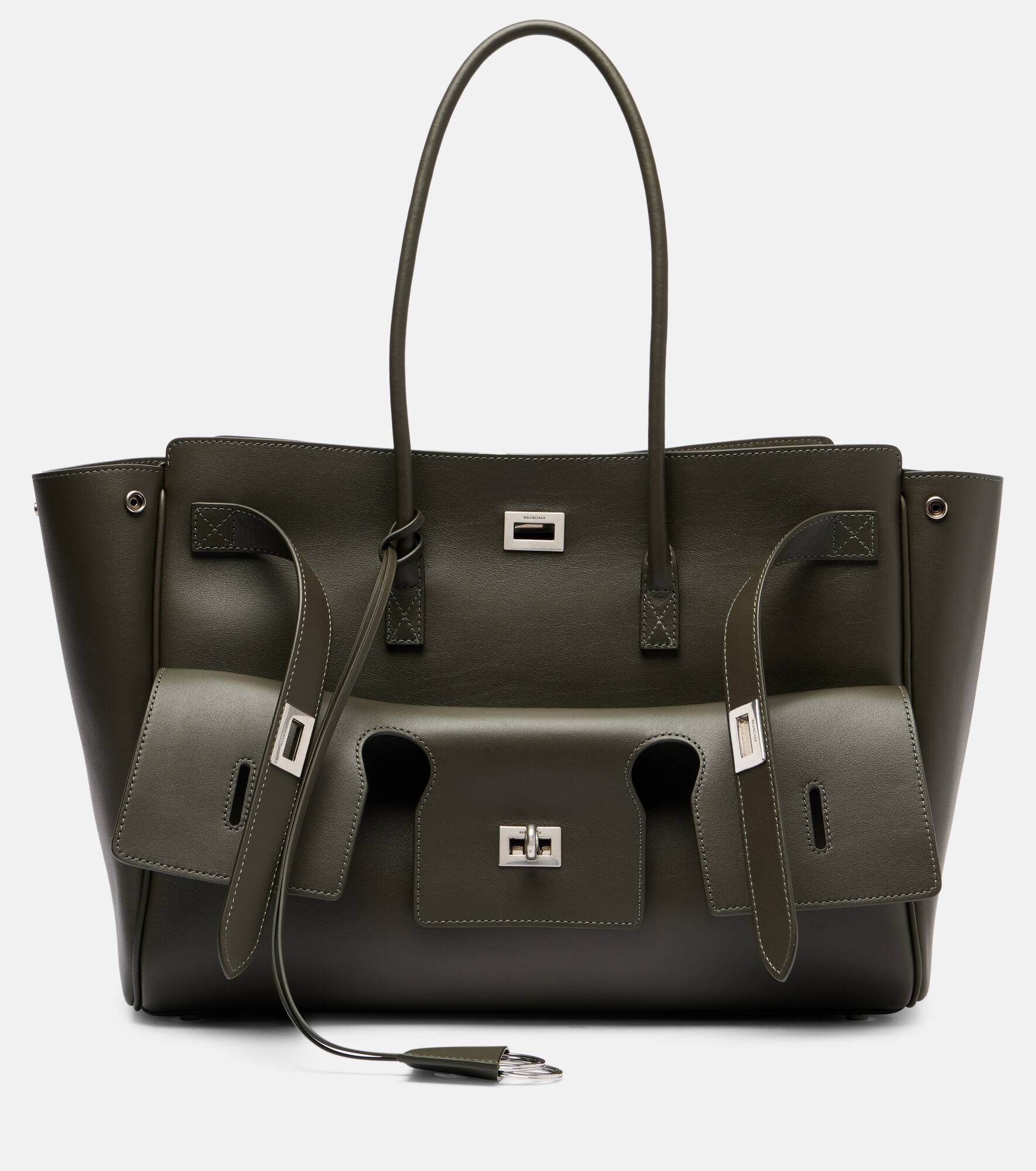 Crafted from supple leather, the Bel Air Medium tote bag from Balenciaga features a spacious silhouette with long handles for versatile wear. The deconstructed-inspired design is finished with a cloche cle with two split rings and turn-lock closure. Product Details - Material: leather - Lining: leather - Made in Italy - Designer color name: Khaki - Item color: gray - Hardware color: silver - Top handle - Closure: turn-lock fastening - Internal details: internal zipped pocket - Includes: dust bag - Item number: P01080490 Size & Fit - Height 27.5cm-11" - Width 34cm-13.5" - Depth 15cm-6" - Length of handles 60cm-23.5"