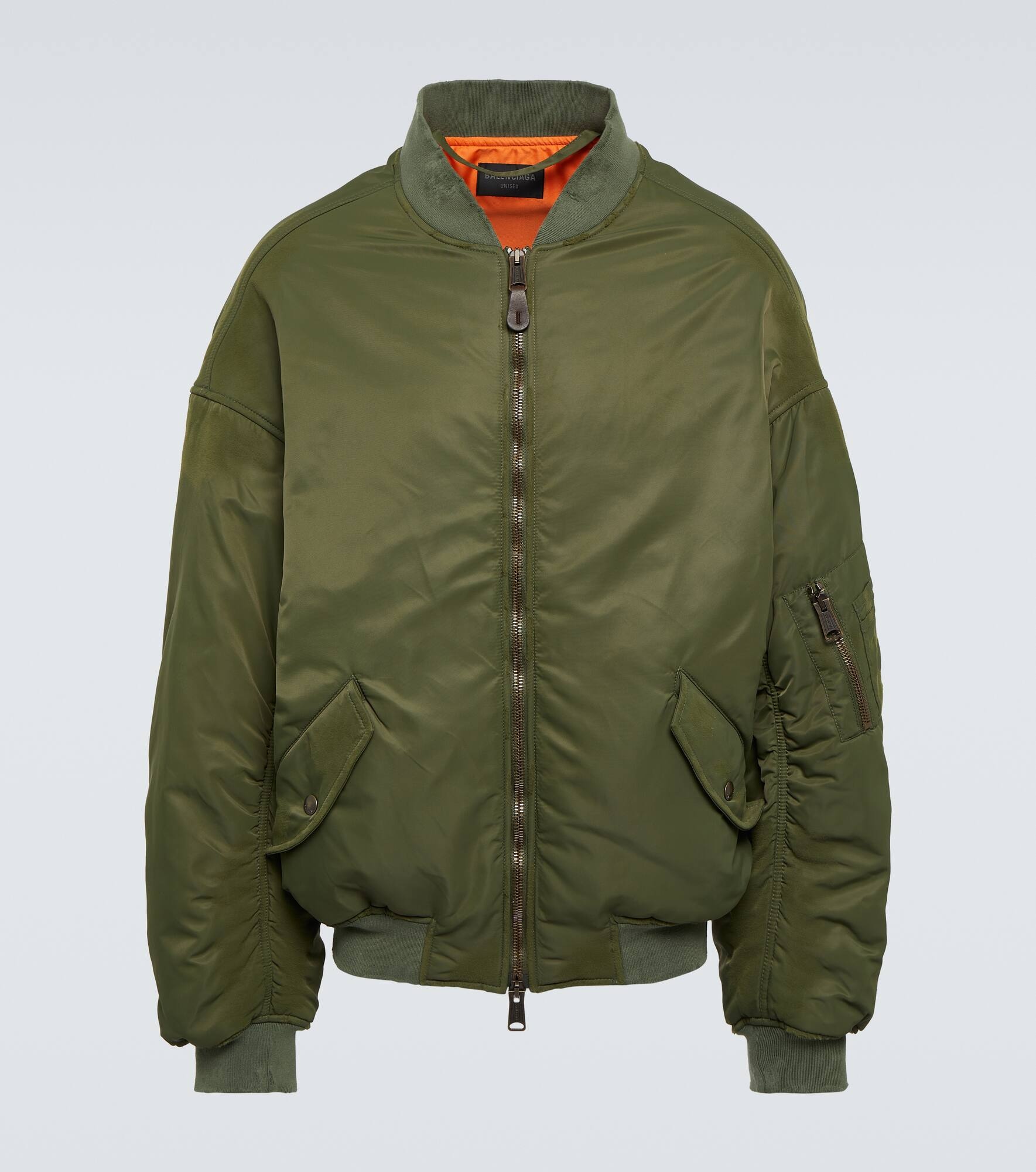 Product Details - Material: 100% polyamide - Filling: 100% polyester - Care instructions: dry clean - Made in Italy - Designer color name: Khaki - Closure: zipped front - Trim: 80% cotton, 16% polyamide, 4% elastane - Lining: 100% polyester - Pockets: snap-buttoned pocket - Item number: P00906296 Size & Fit - True to size - Unisex style - Dropped shoulders - Elasticated hem - Oversized - Non-stretchy fabric - Falls to the hip - The model in the picture is 185cm-6'1" and wearing a size M