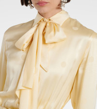 Unexpected touches characterize Balenciaga's designs, including this bow-detail midi dress. Made from lustrous silk with a polka-dot jacquard motif, it reveals bold corset-like lacing at the back, running from the neckline to the hem. Product Details - Material: 100% silk - Care instructions: dry clean - Made in Italy - Designer color name: Cream - Item color: beige - Closure: buttoned front - Self-tie collar - Item number: P01038573