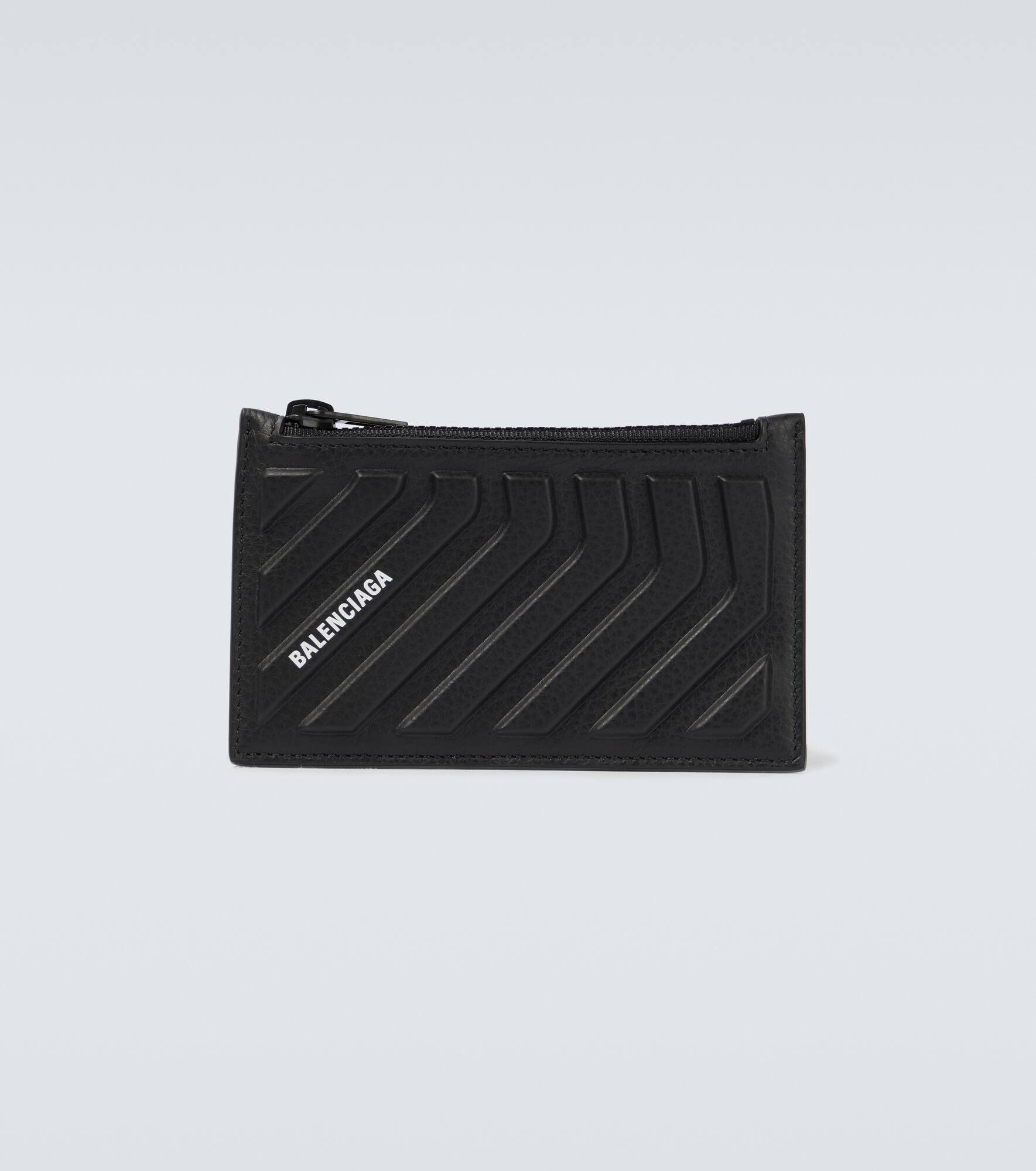 Balenciaga's Car card holder is named for its racer stripe-style debossing. Made from leather in black, it has multiple card slots and a zipped coin pocket. - material: calf leather - internal details: fabric lining, card slots, zipped coin pocket - colour of fastening: black - zipped top - Made in Italy - comes with dust bag - comes with a box - Designer colour name: Black