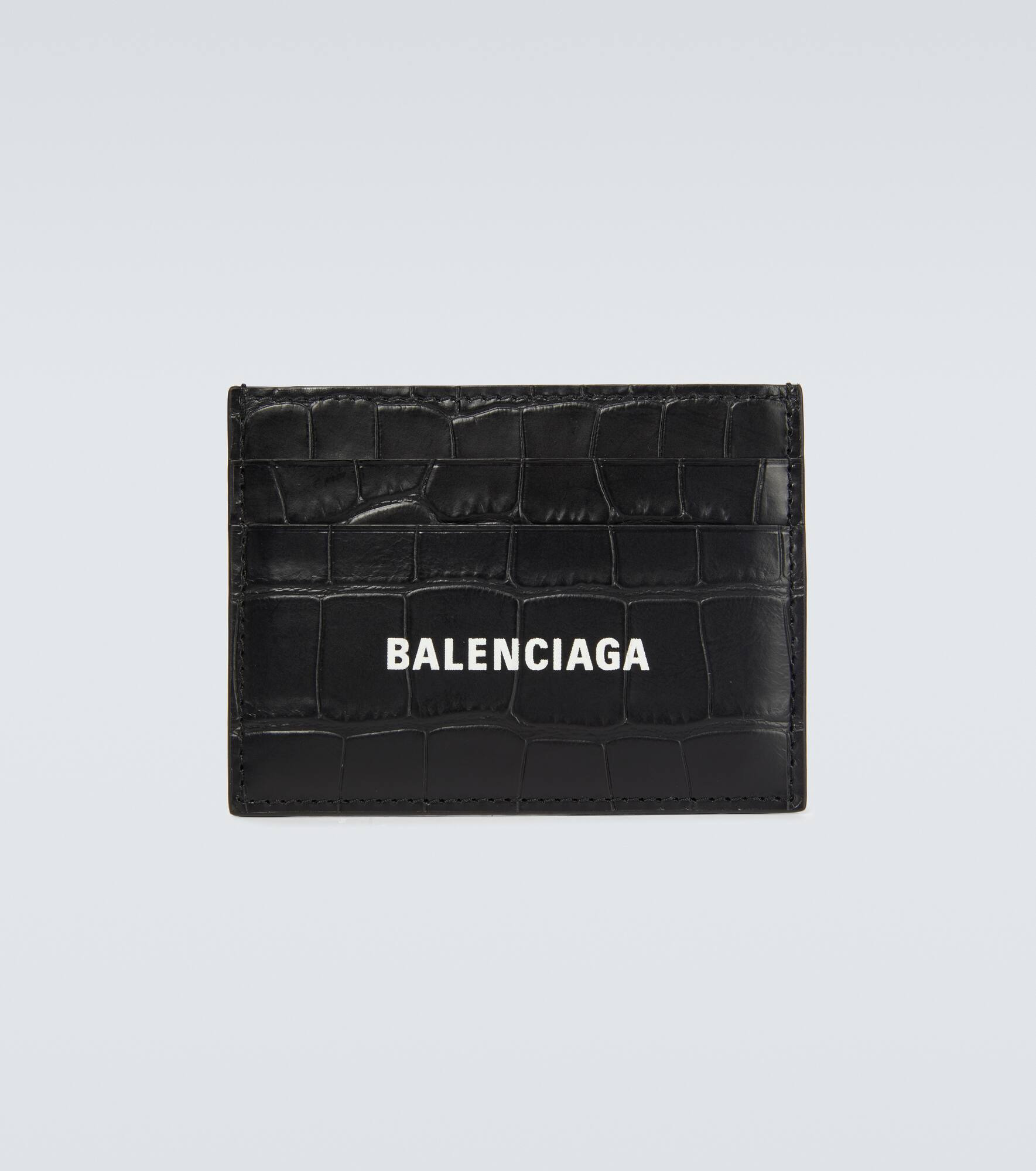 Made from 100% black leather with a white contrast logo at the front, this croc-effect cardholder from Balenciaga has six card slots and a slit compartment. Product Details - Made in Italy - Comes with dust bag - Designer color name: Black - Material: calf leather - Item number: P00569633 Size & Fit - Height 7,5cm-3" - Width 10cm-4"