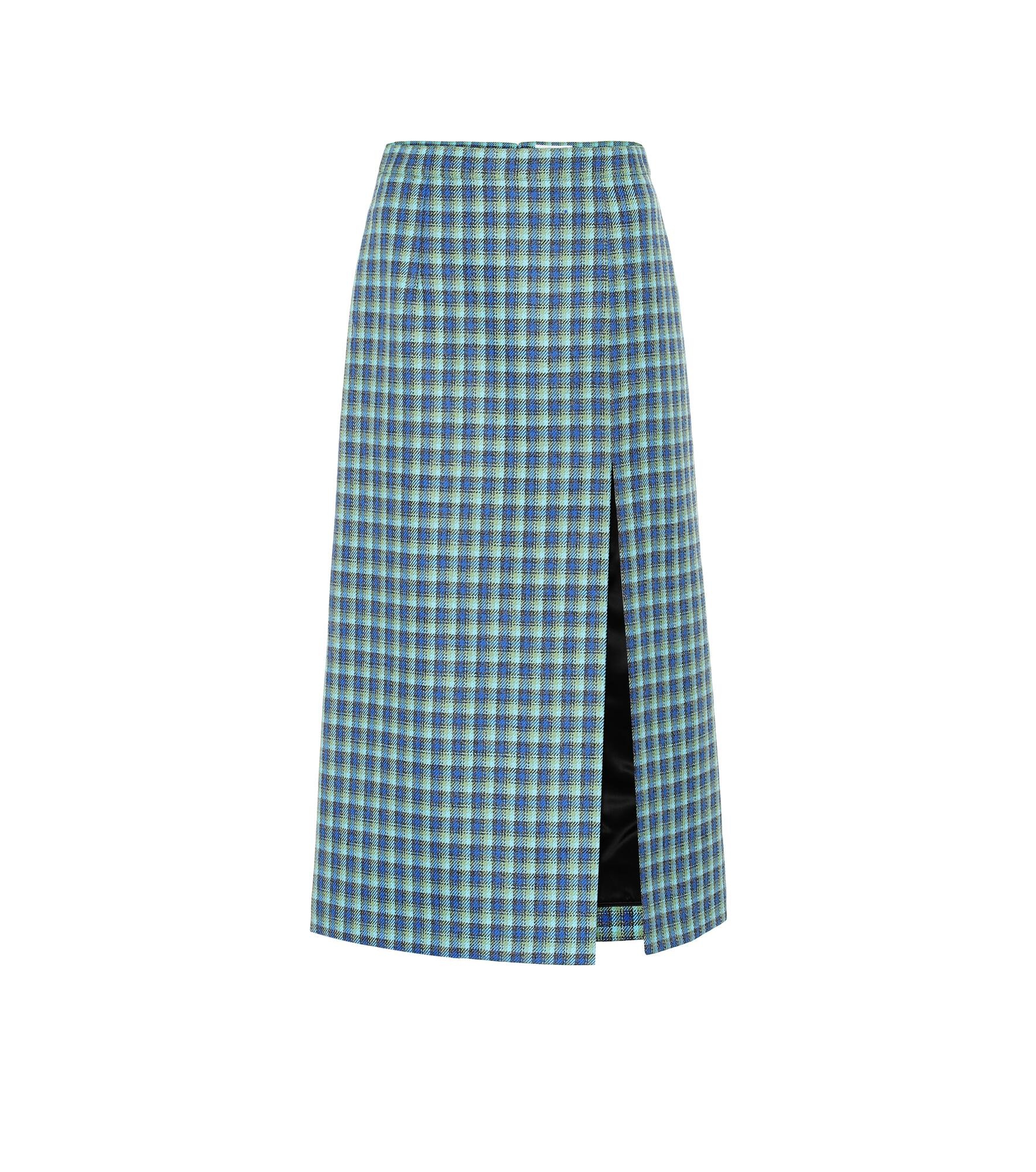 Elevate your office edit with this checked wool pencil skirt from Balenciaga. Crafted in Italy, the high-waisted design takes on an A-line shape with a high slit that runs up one leg. Make it a matching set by pairing yours with the Hourglass blazer in the same blue check. Product Details - Lining: fully lined, 100% cupro - Belt loops - Designer color name: Blue/Azure - Made in Italy - Material: 100% virgin wool - Closure: zipped back, hook-fastening back - Item number: P00402863 Size & Fit - True to size - Fitted - Mid-weight material - High-waisted - The model seen in the picture is 178cm-5'10" and wearing a size FR 36