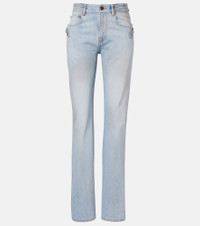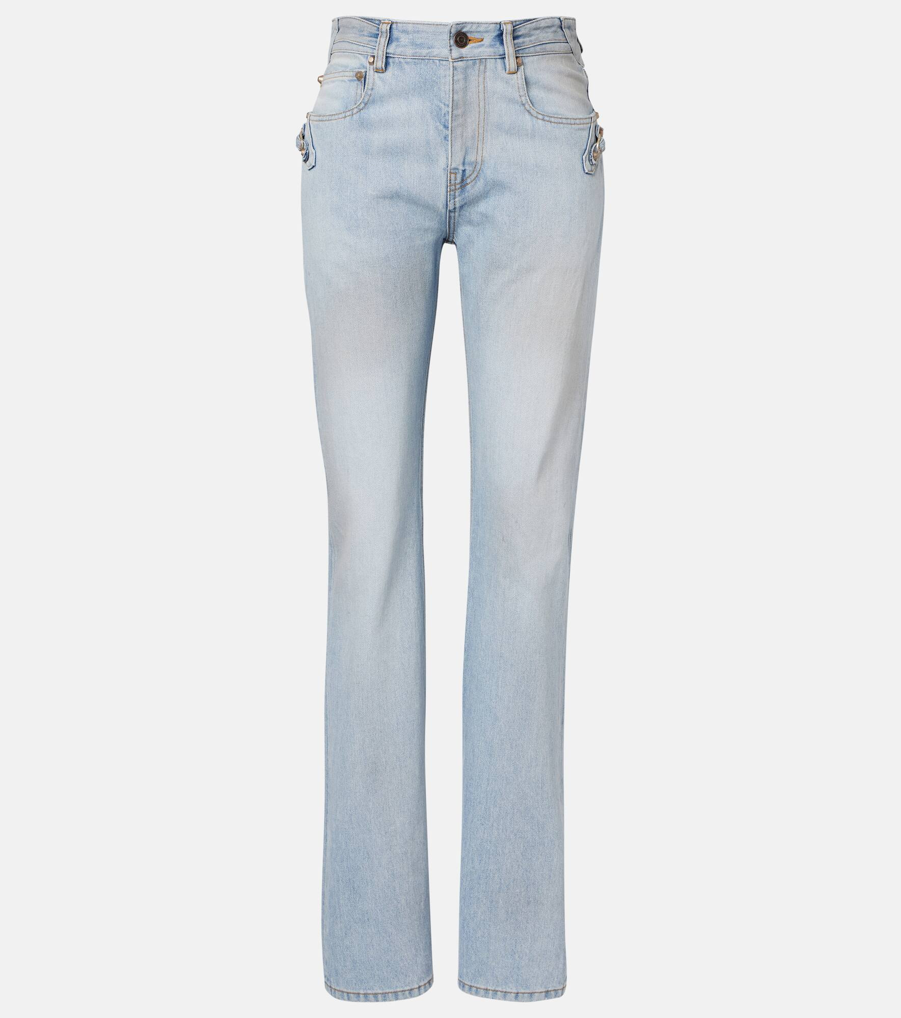 Balenciaga, a heritage fashion house celebrated for its innovative tailoring and contemporary edge, brings casual sophistication to the City straight jeans. Cut with a low-rise silhouette, this five-pocket style embodies the label’s modern yet effortless attitude. Product Details - Material: 100% cotton - Care instructions: machine wash at 30 degrees - Made in Japan - Designer color name: Light Blue - Item color: blue - Pocket lining: 65% polyester, 35% cotton - Closure: zip and button fastening - Pockets: five pockets - Belt loops - Item number: P01092739 Size & Fit - True to size - Non-stretchy fabric - Straight leg - Mid-rise - The model seen in the picture is 178cm-5'10" and wearing a size 26