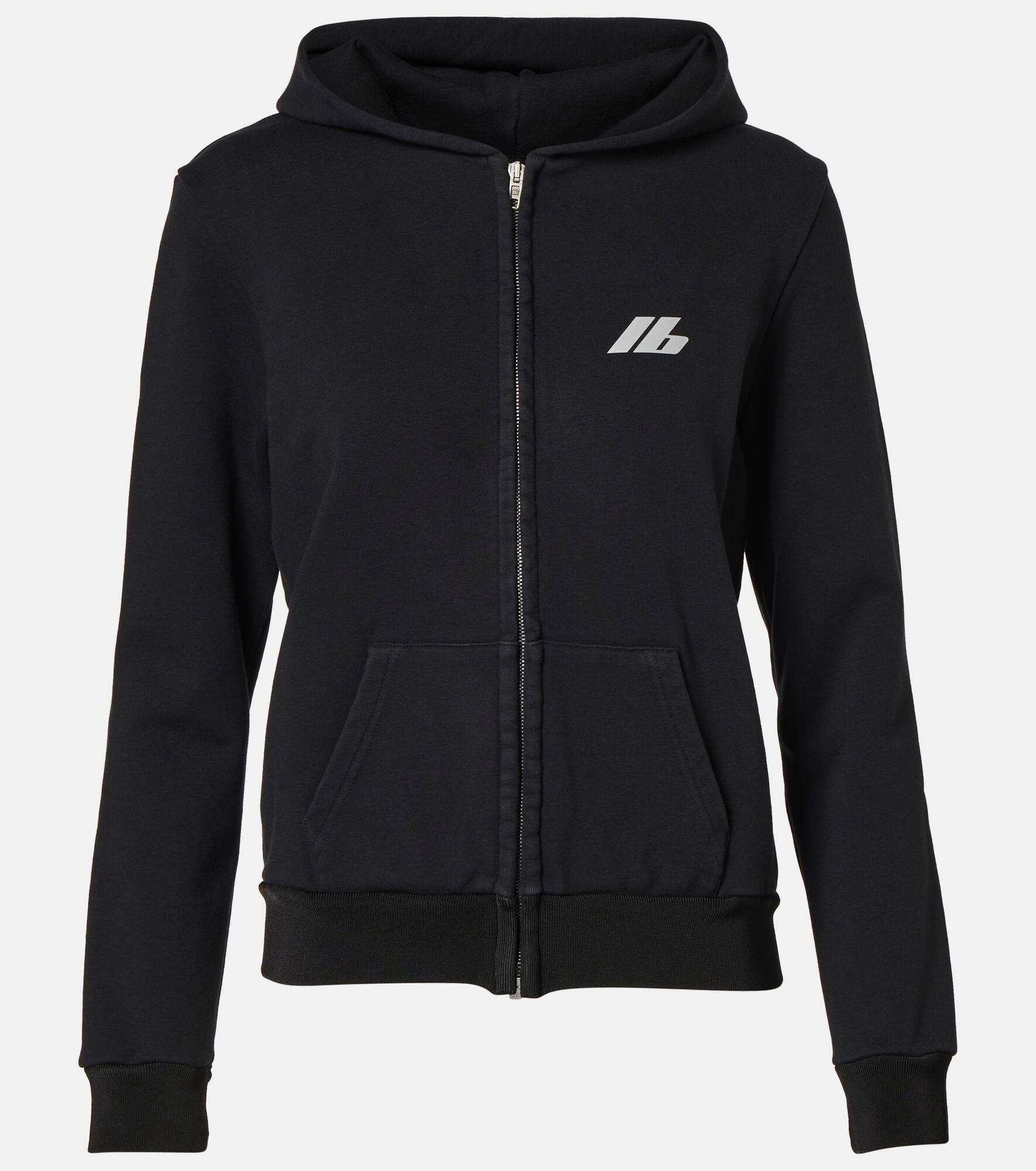 Product Details - Material: 92% cotton, 8% elastane - Care instructions: hand wash - Made in Portugal - Designer color name: Black - Closure: zipped front - Pockets: kangaroo pocket - Hood - Item number: P00955024 Size & Fit - True to size - Dropped shoulders - Fitted - Stretchy fabric - Slightly cropped - The model seen in the picture is 178cm-5'10" and wearing a size XS
